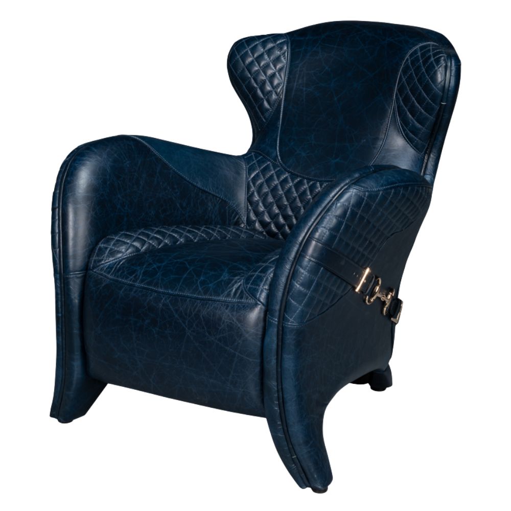 Enjoy the perfect blend of comfort and sophistication with the Chateau Blue Leather Accent Chair. Upholstered in rich Chateau Blue top-grain leather and expertly crafted for lasting support, it adds transitional elegance to living rooms, bedrooms, and home offices. Quilted detailing and a sleek, sculpted silhouette elevate the look, making this statement leather chair an instant upgrade for any space.